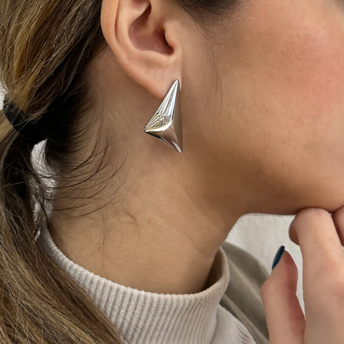Bailey σε ασημί από ανοξείδωτο ατσάλι. Σκουλαρίκια τριγωνικά σε ασημί καρφωτά. Ομορφιά και κομψότητα σε ένα ζευγάρι σκουλαρίκια που θα σας κάνει να τα λατρέψετε. Όλα τα υλικά είναι υποαλλεργικά και δεν μαυρίζουν. Κάθε κόσμημα από το κατάστημά μας κατασκευάζεται και επιλέγεται από εμάς για εσάς με αγάπη. Γι’ αυτό το κάθε κόσμημα που θα επιλέξετε, θα σας έρχεται σε κουτί συσκευασίας δώρου από το tesera.gr!