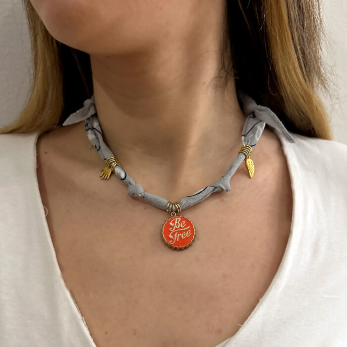 Bandanasneck γκρι υφασμάτινο κολιέ με κούμπωμα από ανοξείδωτο ατσάλι, και με επέκταση για να εφαρμόζει στο ύψος που θέλετε. Η πιο μοντέρνα σειρά χειροποίητων κοσμημάτων που θα απογειώσει κάθε σας outfit. Ξεχώρισε σε κάθε σου εμφάνιση με την νέα συλλογή κοσμημάτων απο teseragr. Κάθε κόσμημα από το κατάστημά μας κατασκευάζεται και επιλέγεται από εμάς για εσάς με αγάπη. Γι’ αυτό το κάθε κόσμημα που επιλέγετε, σας έρχεται σε κουτί συσκευασίας δώρου από το tesera.gr!