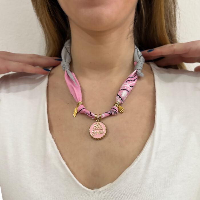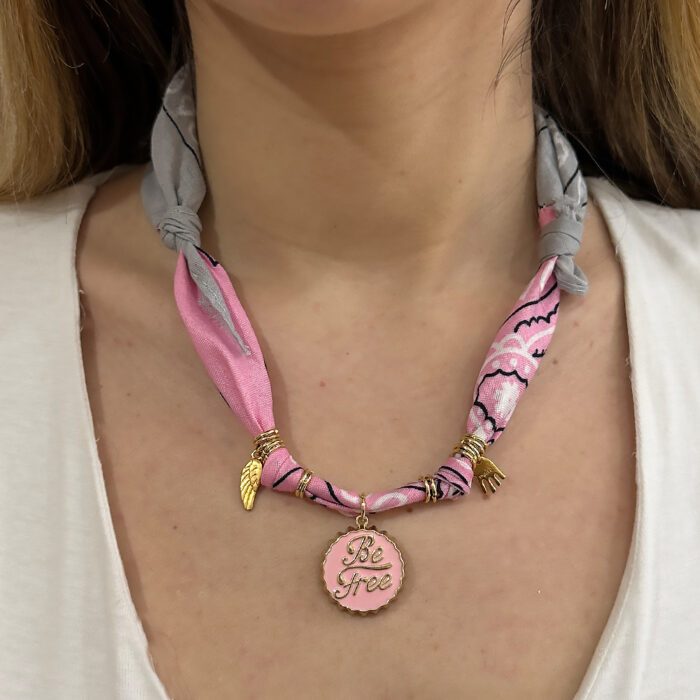 Bandanasneck ροζ γκρι υφασμάτινο κολιέ με κούμπωμα από ανοξείδωτο ατσάλι, και με επέκταση για να εφαρμόζει στο ύψος που θέλετε. Η πιο μοντέρνα σειρά χειροποίητων κοσμημάτων που θα απογειώσει κάθε σας outfit. Ξεχώρισε σε κάθε σου εμφάνιση με την νέα συλλογή κοσμημάτων απο teseragr. Κάθε κόσμημα από το κατάστημά μας κατασκευάζεται και επιλέγεται από εμάς για εσάς με αγάπη. Γι’ αυτό το κάθε κόσμημα που επιλέγετε, σας έρχεται σε κουτί συσκευασίας δώρου από το tesera.gr!