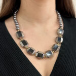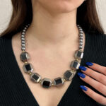 Κολιέ Biena ασημί μαύρο, με πέρλες γκρι και γυάλινες πέτρες, με επέκταση στο κούμπωμα για να εφαρμόζεται στο ύψος που θέλετε. Η πιο μοντέρνα σειρά κοσμημάτων που θα απογειώσει κάθε σας outfit. Ξεχώρισε σε κάθε σου εμφάνιση με την νέα συλλογή κοσμημάτων απο teseragr. Κάθε κόσμημα από το κατάστημά μας κατασκευάζεται και επιλέγεται από εμάς για εσάς με αγάπη. Γι’ αυτό το κάθε κόσμημα που επιλέγετε, σας έρχεται σε κουτί συσκευασίας δώρου από το tesera.gr!