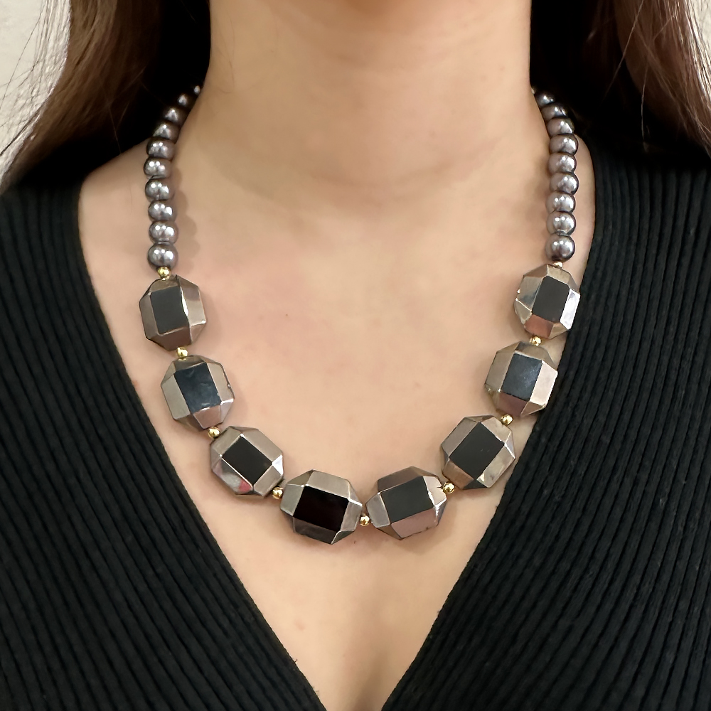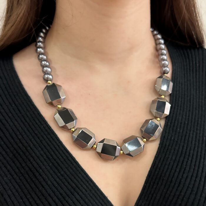 Κολιέ Biena ασημί μαύρο, με πέρλες γκρι και γυάλινες πέτρες, με επέκταση στο κούμπωμα για να εφαρμόζεται στο ύψος που θέλετε. Η πιο μοντέρνα σειρά κοσμημάτων που θα απογειώσει κάθε σας outfit. Ξεχώρισε σε κάθε σου εμφάνιση με την νέα συλλογή κοσμημάτων απο teseragr. Κάθε κόσμημα από το κατάστημά μας κατασκευάζεται και επιλέγεται από εμάς για εσάς με αγάπη. Γι’ αυτό το κάθε κόσμημα που επιλέγετε, σας έρχεται σε κουτί συσκευασίας δώρου από το tesera.gr!