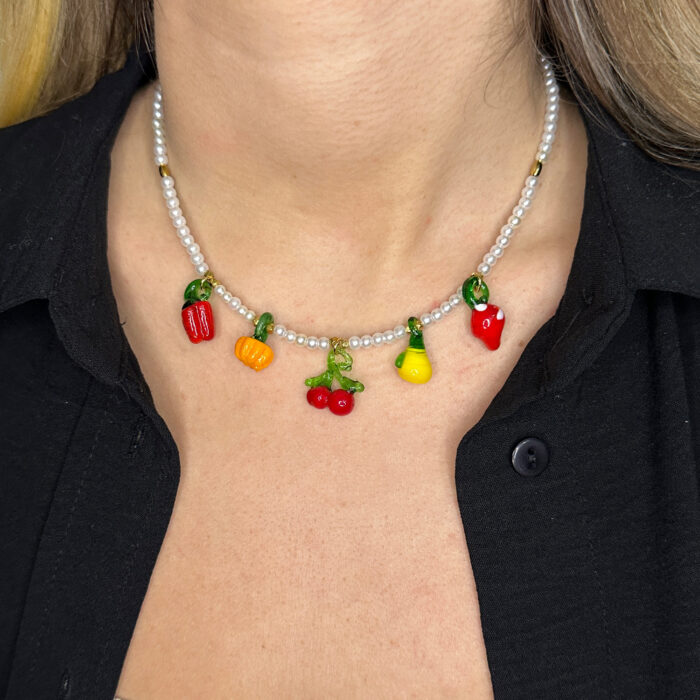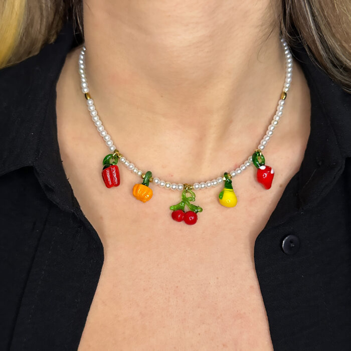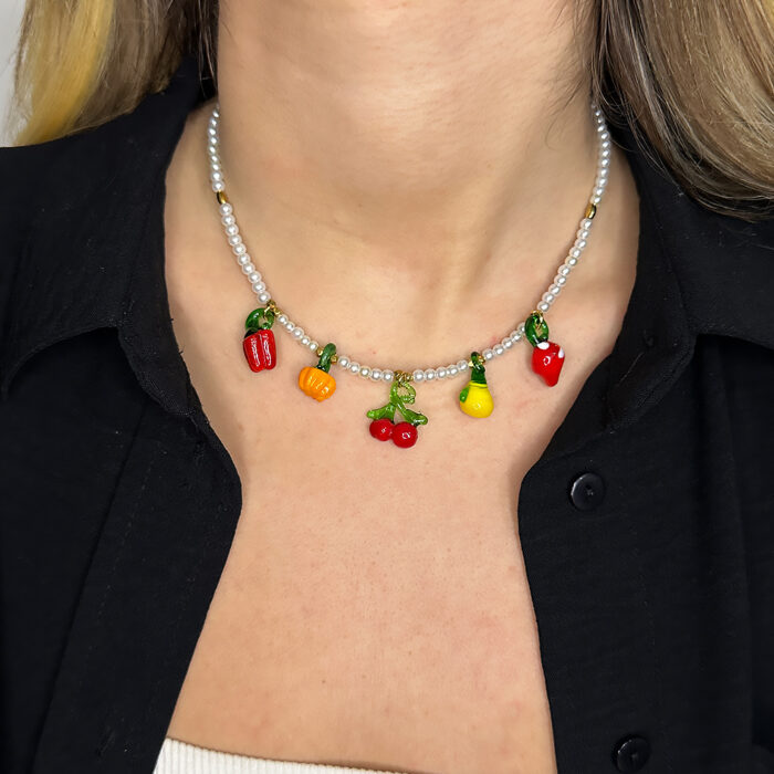 Cherry necklace με φρουτάκια γυαλινα και περίτσες άσπρες, κούμπωμα από ανοξείδωτο ατσάλι, 48cm μάκρος. Η πιο μοντέρνα σειρά χειροποίητων κοσμημάτων που θα απογειώσει κάθε σας outfit. Ξεχώρισε σε κάθε σου εμφάνιση με την νέα συλλογή κοσμημάτων απο teseragr. Κάθε κόσμημα από το κατάστημά μας κατασκευάζεται και επιλέγεται από εμάς για εσάς με αγάπη. Γι’ αυτό το κάθε κόσμημα που επιλέγετε, σας έρχεται σε κουτί συσκευασίας δώρου από το tesera.gr!