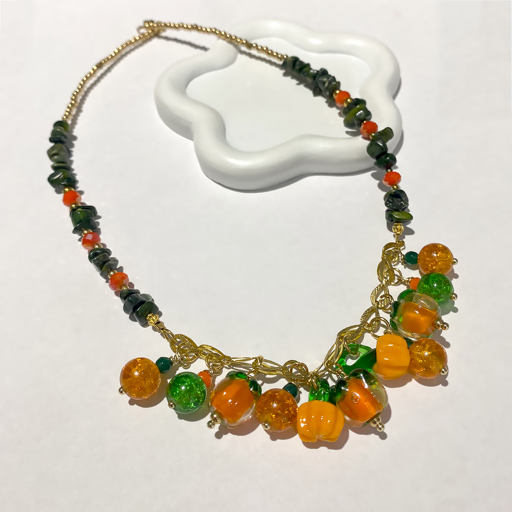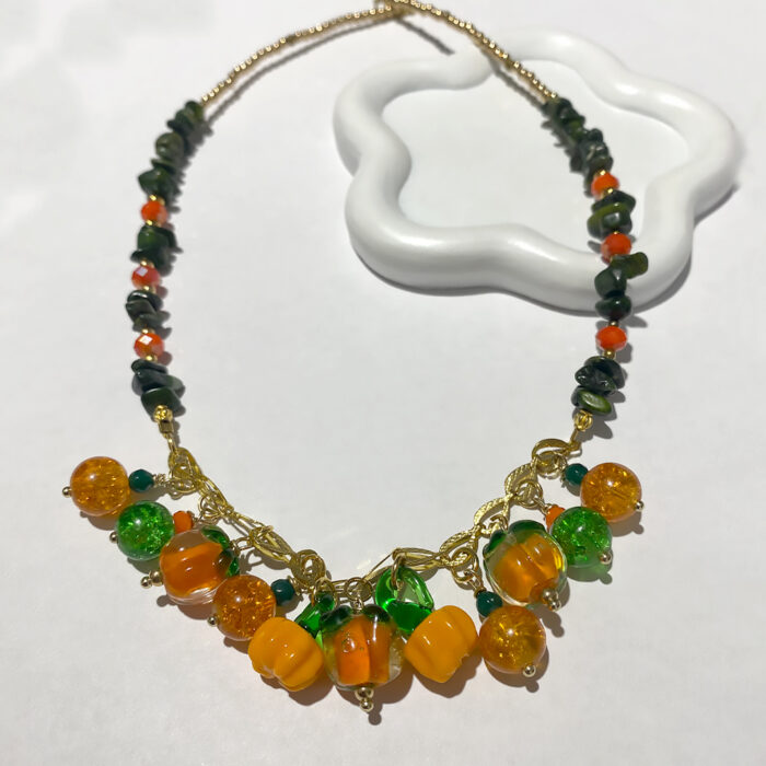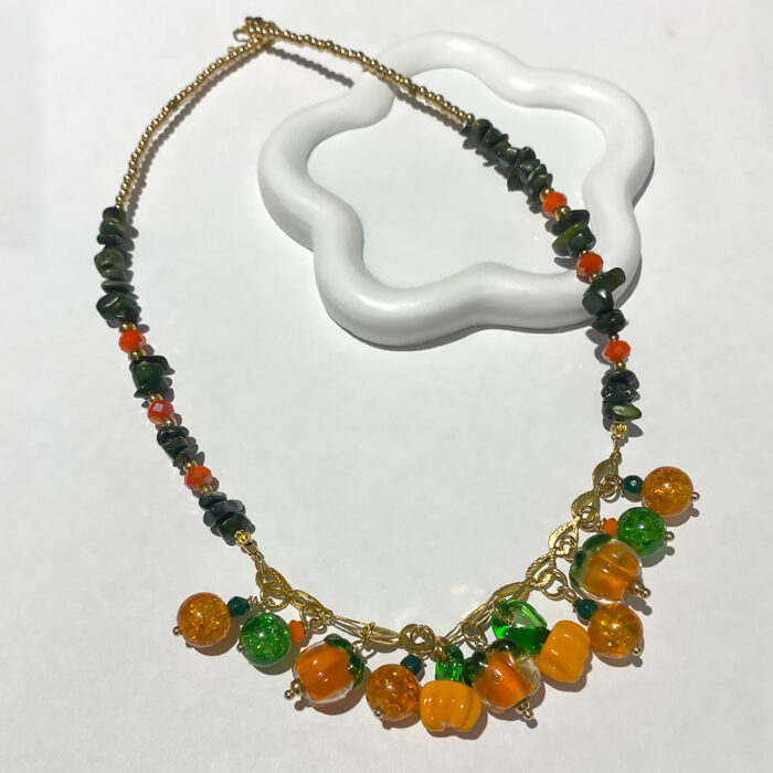 Κολιέ cute fruits πορτοκαλί πράσινο με χρυσή αλυσίδα απο ανοξείδωτο ατσάλι και κρεμαστά γυάλινα φρουτάκια και ημιπολύτιμους λίθους. Με επέκταση στο κούμπωμα για να εφαρμόζεται στο ύψος που θέλετε. Η πιο μοντέρνα σειρά κοσμημάτων που θα απογειώσει κάθε σας outfit. Ξεχώρισε σε κάθε σου εμφάνιση με την νέα συλλογή κοσμημάτων απο teseragr. Κάθε κόσμημα από το κατάστημά μας κατασκευάζεται και επιλέγεται από εμάς για εσάς με αγάπη. Γι’ αυτό το κάθε κόσμημα που επιλέγετε, σας έρχεται σε κουτί συσκευασίας δώρου από το tesera.gr!