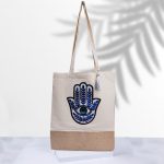 Γυναικεία χειροποίητη τσάντα άσπρη hamsa hand υφασμάτινη
