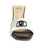 Γυναικεία παπούτσια mules ασπρόμαυρα τετράγωνο τακούνι με μαύρο λογότυπο συνδυασμός δέρματος και pu δέρμα, μαλακό πάτημα ιδανικό να σας καλύψει σε κάθε σας εμφάνιση πρωί βράδυ