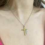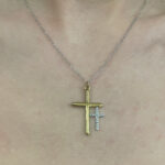 Kολιέ σταυρός διπλός χρυσό ασημί από ανοξείδωτο ατσάλι