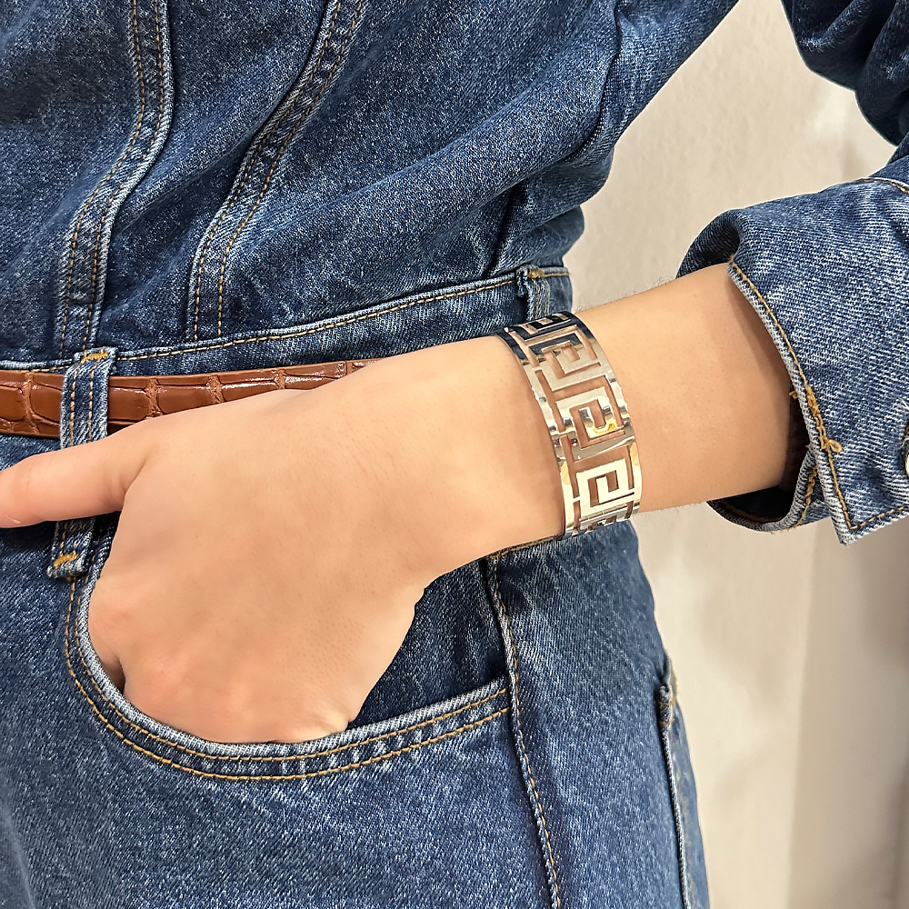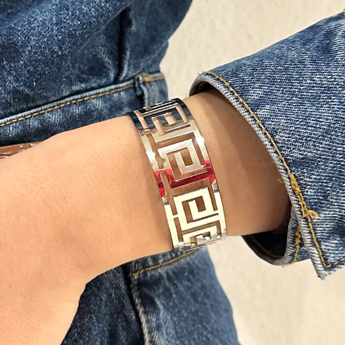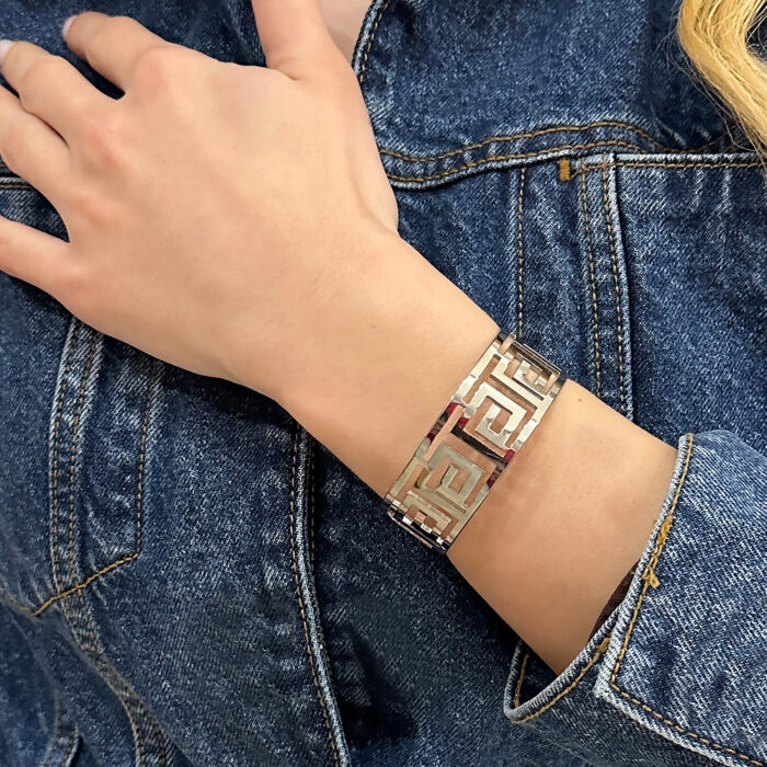 kassandra σε ασημί με σχέδιο μαίανδρος απο ανοξείδωτο ατσάλι. Με άνοιγμα εφαρμόζει σε όλα τα χέρια. Συνδυάζεται με όλα τα κοσμήματα σας. Όλα τα υλικά είναι υποαλλεργικά και δεν μαυρίζουν. Κάθε κόσμημα από το κατάστημά μας κατασκευάζεται και επιλέγεται από εμάς για εσάς με αγάπη. Γι’ αυτό το κάθε κόσμημα που επιλέγετε, σας έρχεται σε κουτί συσκευασίας δώρου από το tesera.gr!