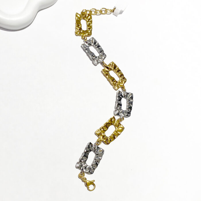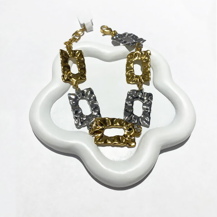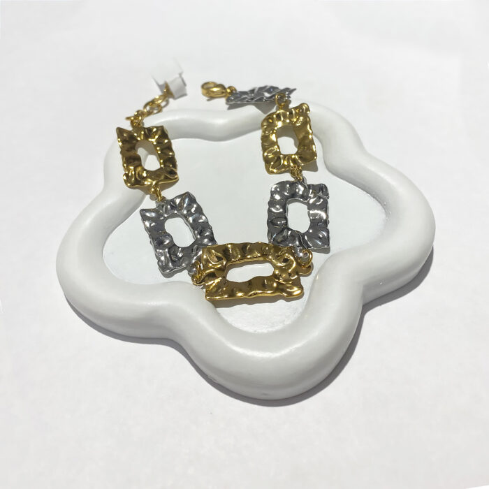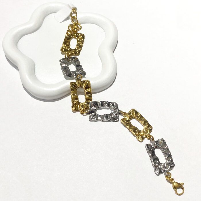 Laurel με σφυρήλατα ορθογώνια σχήματα σε χρυσό ασημί από ανοξείδωτο ατσάλι. Συνδυάζεται με όλα τα κοσμήματα σας. Όλα τα υλικά είναι υποαλλεργικά και δεν μαυρίζουν. Κάθε κόσμημα από το κατάστημά μας κατασκευάζεται και επιλέγεται από εμάς για εσάς με αγάπη. Γι’ αυτό το κάθε κόσμημα που επιλέγετε, σας έρχεται σε κουτί συσκευασίας δώρου από το tesera.gr!
