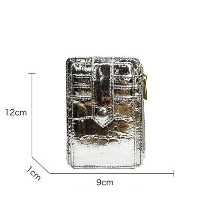 Πορτοφόλι pw metallic silver black με ασημί λεπτομέρειες. Διάσταση 11,50cm πλάτος X 9cm ύψος και 3cm πλάτος. Μεταλλιζέ Όψη με θήκη για χαρτονομίσματα