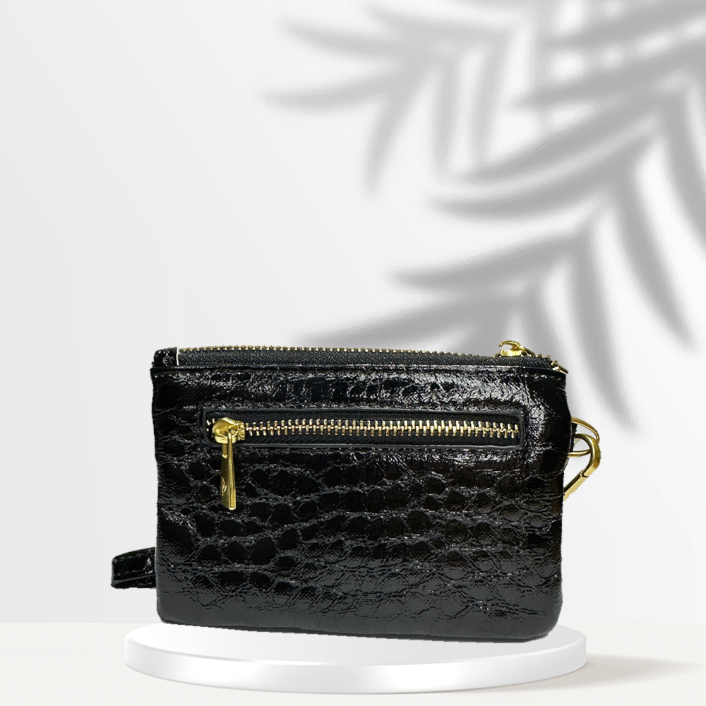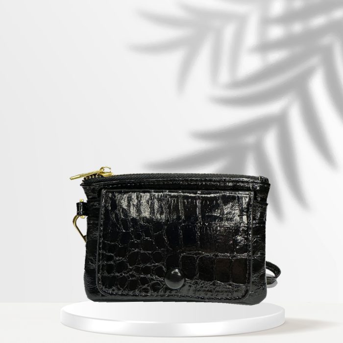 Πορτοφόλι pw metallic black με χρυσές λεπτόμερειες . Διάσταση 11cm πλάτος X 8cm ύψος και 2,50cm πλάτος. Μεταλλιζέ Όψη με