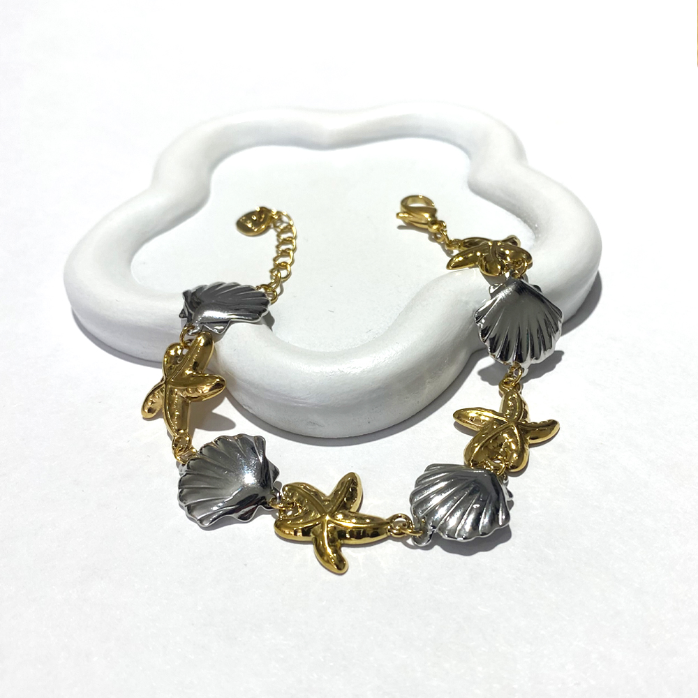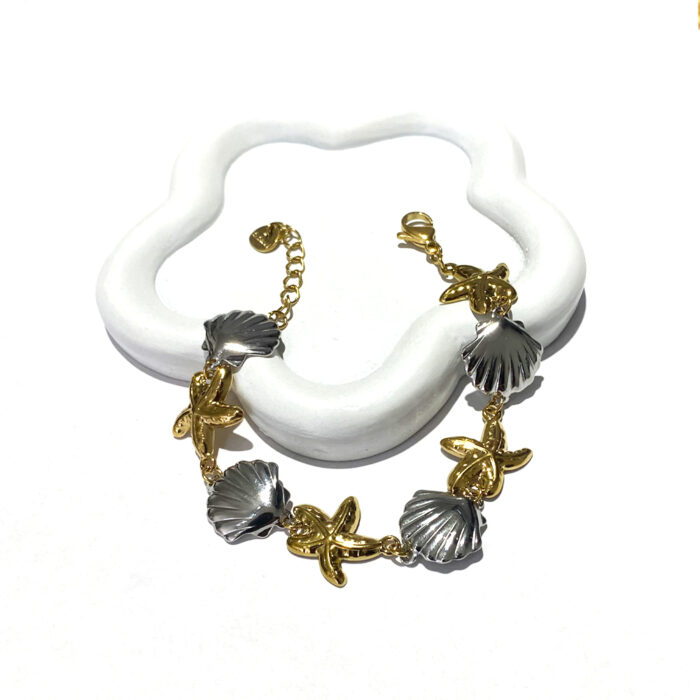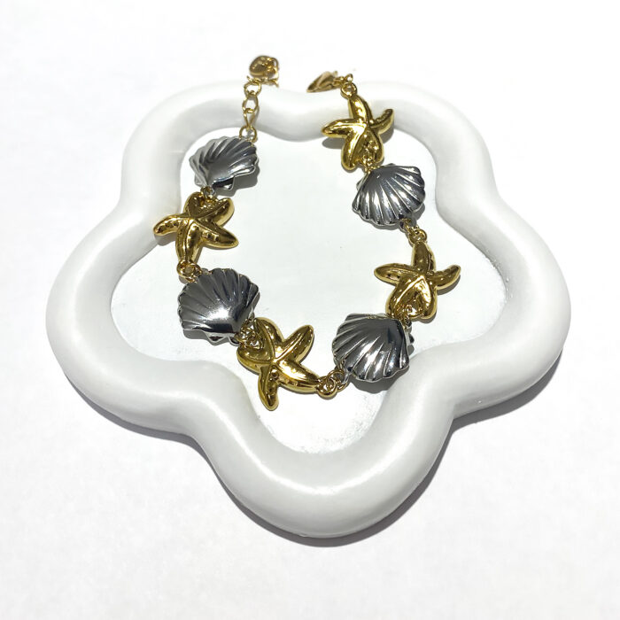 Seashell bracelet με αστερίες και κοχύλια σε χρυσό ασημί από ανοξείδωτο ατσάλι. Συνδυάζεται με όλα τα κοσμήματα σας. Όλα τα υλικά είναι υποαλλεργικά και δεν μαυρίζουν. Κάθε κόσμημα από το κατάστημά μας κατασκευάζεται και επιλέγεται από εμάς για εσάς με αγάπη. Γι’ αυτό το κάθε κόσμημα που επιλέγετε, σας έρχεται σε κουτί συσκευασίας δώρου από το tesera.gr!