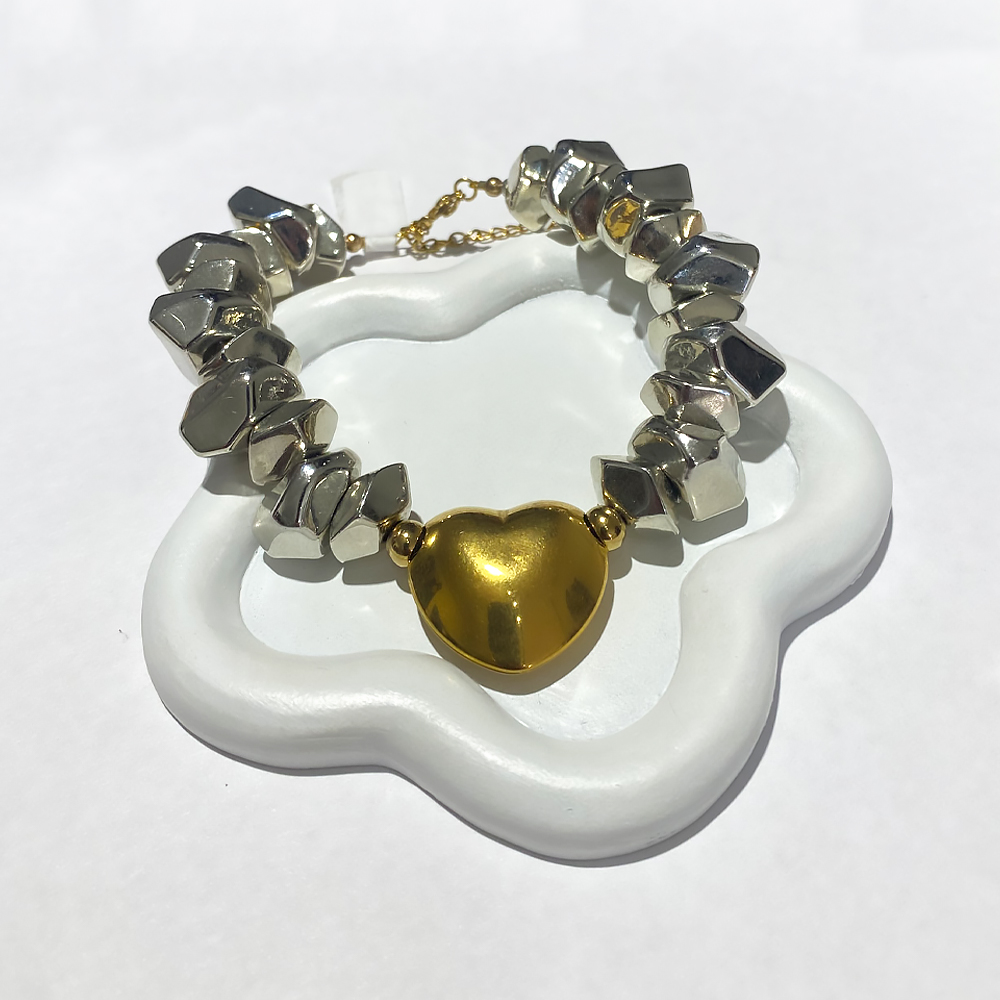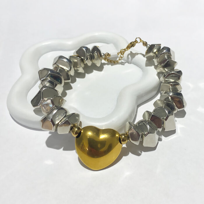 Selen gold heart με ακανόνιστες πέτρες ασημί και χρυσή καρδιά από ανοξείδωτο ατσάλι. Συνδυάζεται με όλα τα κοσμήματα σας. Όλα τα υλικά είναι υποαλλεργικά και δεν μαυρίζουν. Κάθε κόσμημα από το κατάστημά μας κατασκευάζεται και επιλέγεται από εμάς για εσάς με αγάπη. Γι’ αυτό το κάθε κόσμημα που επιλέγετε, σας έρχεται σε κουτί συσκευασίας δώρου από το tesera.gr!
