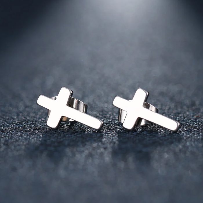 Σκουλαρίκια σταυρός σε ασημί από ανοξείδωτο ατσάλι
