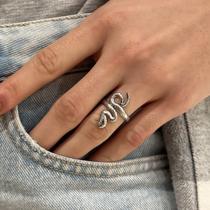 Δαχτυλίδι snake ασημί απο ανοξείδωτο ατσάλι, με άνοιγμα για να εφαρμόζεται σε όλα τα δάχτυλα. Όλα τα υλικά είναι υποαλλεργικά και δεν μαυρίζουν. Κάθε κόσμημα από το κατάστημά μας κατασκευάζεται και επιλέγεται από εμάς για εσάς με αγάπη. Γι’ αυτό το κάθε κόσμημα που επιλέγετε, σας έρχεται σε κουτί συσκευασίας δώρου από το tesera.gr!