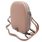 Τσάντα πλάτης και ώμου οβάλ ροζ 3 θέσεων με ασημί φερμουάρ από PU δέρμα