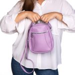 Τσάντα πλάτης pony λιλά με ασημί φερμουάρ από PU δέρμα